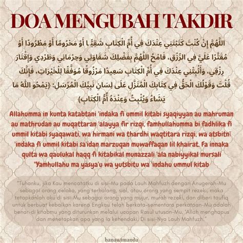 Doa plays a vital role in the interplay between takdir and usaha . While we make efforts and strive to achieve our goals, we also turn to Allah in prayer, seeking His assistance and guidance. We ask Him to bless our efforts, to make things easy for us, and to protect us from harm. Doa acknowledges that ultimately, everything is in Allah’s hands and that we are dependent on His grace and mercy.