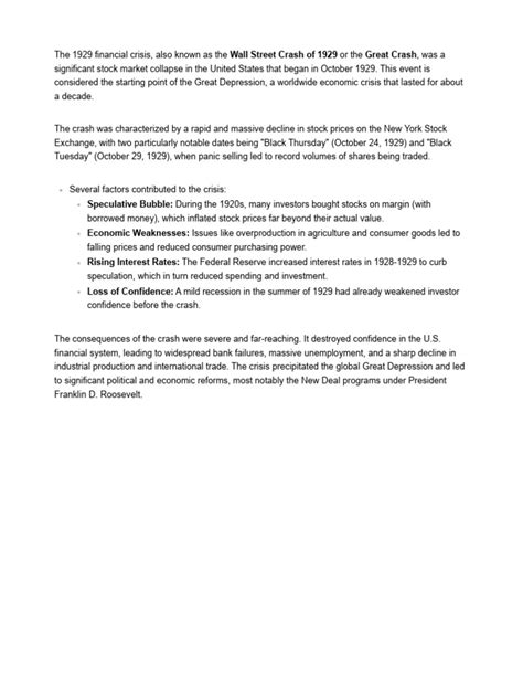 Hey guys, let’s dive into one of the most significant economic downturns in history: the 1929 financial crisis . You’ve probably heard of the Great Depression, and that all kicked off in 1929. But what actually happened to trigger such a massive financial meltdown? It wasn’t just one single event, but rather a perfect storm of factors brewing for years. We’re talking about a speculative bubble, shaky banking practices, and some really tough economic conditions that set the stage for disaster. Understanding this period is super important because it teaches us a ton about how economies work and the consequences of unchecked speculation.