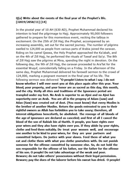 The contemporary relevance of the Farewell Sermon cannot be overstated. In a world marked by conflict, inequality, and injustice, the sermon’s message of unity, equality, and peace is more important than ever. Its principles can be applied to address a wide range of contemporary challenges, from promoting social justice and human rights to resolving conflicts and fostering intercultural understanding. The Farewell Sermon’s emphasis on the sanctity of human life and property provides a basis for promoting peace and security in a world plagued by violence and terrorism. Its call for the abolition of usury and the establishment of a fair economic system offers a model for addressing economic inequality and promoting sustainable development. The sermon’s emphasis on the rights of women provides a framework for promoting gender equality and empowering women in all spheres of life. Furthermore, the Farewell Sermon can serve as a bridge between different cultures and religions, promoting dialogue and understanding. Its message of universal brotherhood and sisterhood can help to overcome prejudice and discrimination and build a more inclusive and harmonious world. By understanding and applying the principles of the Farewell Sermon, Muslims and non-Muslims alike can work together to create a better future for all.