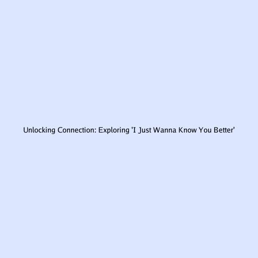 Unlocking Connection: Exploring 'I Just Wanna Know You Better'