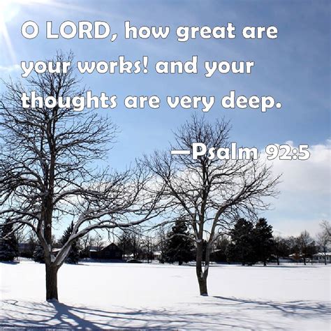 So, what’s the big takeaway from all this, guys? How does contemplating Psalm 92:5 actually help us in our daily lives? Well, understanding the grandeur of God’s great works and the depth of His thoughts offers us immense solace and strength, especially when life throws its inevitable curveballs. In a world that often feels chaotic, uncertain, and overwhelming, this verse is like a steadfast anchor for our souls. When we’re faced with personal struggles, global crises, or just the everyday anxieties of modern life, remembering that God’s thoughts are very deep can be incredibly reassuring. It means that there’s a divine plan, an overarching purpose, even when we can’t see it. It helps us to step back from our immediate frustrations and trust that a Being of infinite wisdom and power is ultimately orchestrating things. We might not understand why certain things happen, but we can rest in the knowledge that His perspective is eternal, and His wisdom is perfect. This isn’t about blind optimism; it’s about informed faith . It’s knowing that the same God who hung the stars and intricately designed every living creature is also deeply invested in your life. He cares about your worries, your hopes, and your fears, and He’s working all things for good, even if the path isn’t clear to you right now. Furthermore, recognizing the greatness of God’s works can instill in us a profound sense of humility and wonder. It pulls us out of our often self-centered concerns and helps us appreciate the vastness of something far greater than ourselves. This shift in perspective can be incredibly liberating. It reminds us that our problems, while real and significant to us, are not insurmountable to a God who created and sustains the entire universe. It encourages us to lean on Him, to surrender our anxieties, and to find peace in His sovereign control. When we are overwhelmed by the world’s complexities, the simple truth of Psalm 92:5 reminds us that there is a benevolent and all-wise Creator who holds everything together. This understanding fosters an unwavering hope and a resilient spirit, knowing that we are loved and cared for by the most powerful and insightful mind in existence. It’s a powerful source of comfort, transforming anxiety into trust and despair into a quiet, hopeful anticipation of His unfolding plan. So, next time you feel swamped or unsure, let Psalm 92:5 be your reminder: God’s great works are a testament to His power, and His deep thoughts are a promise of His perfect wisdom, guiding you through every season of life.