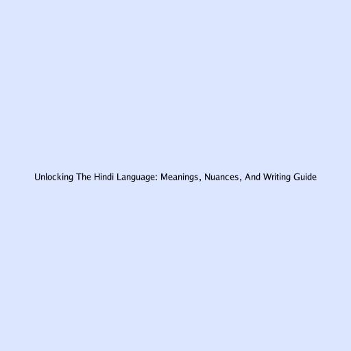 Unlocking the Hindi Language: Meanings, Nuances, and Writing Guide