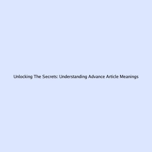 Unlocking the Secrets: Understanding Advance Article Meanings