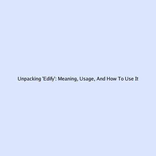 Unpacking 'Edify': Meaning, Usage, And How To Use It