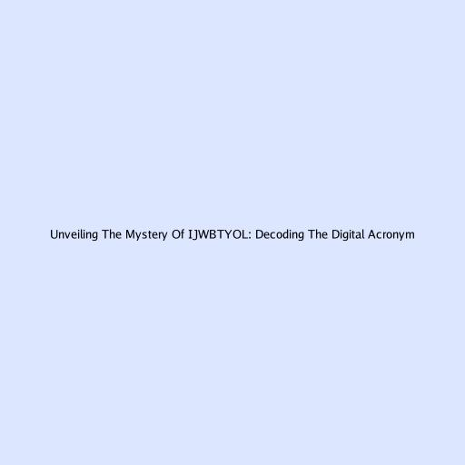 Unveiling The Mystery Of IJWBTYOL: Decoding The Digital Acronym