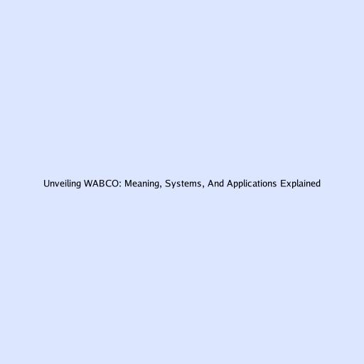 Unveiling WABCO: Meaning, Systems, And Applications Explained