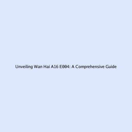 Unveiling Wan Hai A16 E004: A Comprehensive Guide