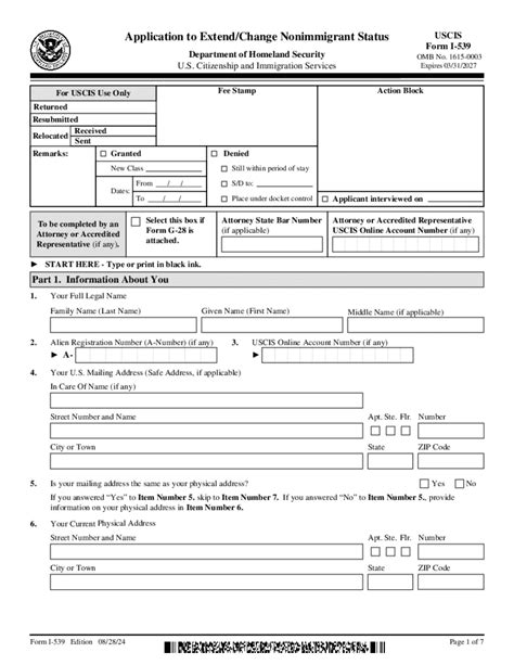 • USCIS Form I-539 Instructions: Read the official instructions carefully before filling out the form.