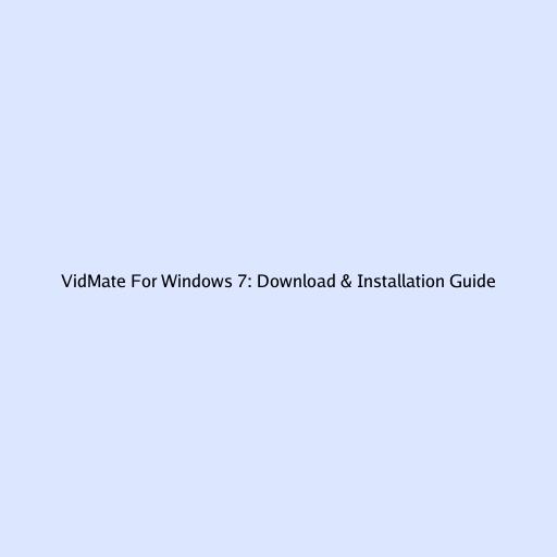 VidMate For Windows 7: Download & Installation Guide