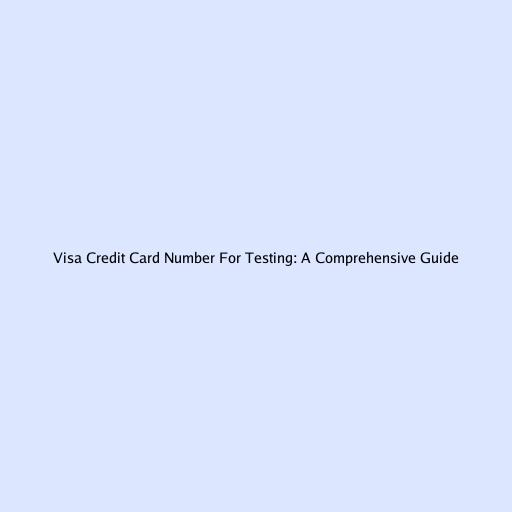 Visa Credit Card Number for Testing: A Comprehensive Guide