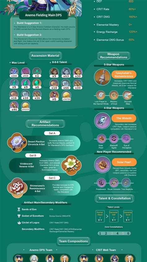 Before we jump into the nitty-gritty of artifacts and weapons, let’s quickly chat about why a Wanderer 4-star build is totally viable and can be incredibly effective. The Wanderer, as an Anemo catalyst user, primarily deals Anemo damage through his Normal and Charged Attacks, especially when he’s in his Skyward Sustenance state. His Elemental Skill, Hanega: Song of the Wind, is the key to unlocking his aerial combat potential, allowing him to hover and attack from above. His Elemental Burst, Kyougen: Invokation, deals a burst of Anemo damage. The beauty of his kit is that it scales well with Attack Percentage and Crit stats, which are readily available on many 4-star artifacts and weapons. Unlike some characters who heavily rely on specific 5-star signatures or constellations to function, the Wanderer’s core damage output is solid enough that you can supplement his strengths with well-chosen 4-star gear. This means you don’t need to feel left out if you haven’t pulled his signature weapon or a specific 5-star artifact set. We’re talking about maximizing his base stats and enhancing his damage multipliers with smart choices. Think of it as optimizing his existing potential. His multipliers are generous, and when you consistently hit those good crit numbers and have a decent attack stat, even without the rarest gear, he’s going to perform admirably. Plus, let’s be honest, sometimes the RNG gods just don’t bless us with those coveted 5-star drops, so having a solid Wanderer 4-star build strategy is essential for everyone’s Genshin Impact journey. We’re going to focus on sets and stats that are relatively easier to farm or obtain, ensuring you can put together a competitive build without endless grinding or spending all your primogems.