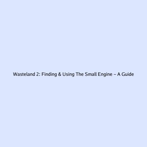 Hey guys! Getting stuck in Wasteland 2 is practically a rite of passage. One of the hurdles many players face early on is figuring out the small engine . You’ll need it to get that crucial water pump working and save the day (or at least, save the water supply!). This guide will walk you through exactly where to find the small engine, how to use it, and some tips to make your journey through the wasteland a little smoother. Let’s dive in!