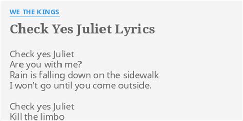 Hey guys, let’s dive into the iconic song “Check Yes Juliet” by We The Kings ! This absolute banger from 2007 has stuck with us for a reason, right? It’s a total throwback anthem that captures that feeling of youthful, unrequited love and the desperate hope that comes with it. You know, that feeling when you’re completely smitten and you’re just waiting for that one person to notice you, to give you that sign, that yes ? Well, this song perfectly encapsulates that rollercoaster of emotions. It’s not just about the lyrics; it’s the energetic pop-punk vibe, the catchy chorus, and the relatable story that make it a timeless hit. Whether you were blasting this in your car with the windows down back in the day or just discovered it, the sentiment remains the same: the universal yearning for connection and the thrill of a potential romantic spark. It’s a song that speaks to the heart, reminding us of those intense feelings we’ve all experienced at some point. The band, We The Kings, really nailed it with this track, solidifying their place in the early 2000s pop-punk scene.