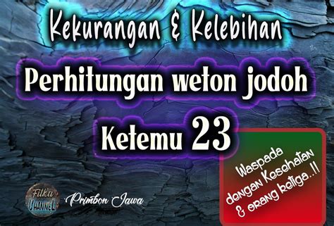 Hey everyone, let’s dive into something super interesting today: Weton Jodoh Ketemu 27 ! For those unfamiliar, Weton is a Javanese calendar system, and it plays a big role in understanding compatibility and potential outcomes in relationships. When you hear “Ketemu 27,” it refers to a specific calculation result within this system. It’s like a secret code that unlocks a glimpse into the future of a couple’s journey together. So, what does it all mean? Let’s unpack this fascinating topic and see what insights we can gain. Get ready, because we’re about to explore the depths of Javanese wisdom and how it relates to love, marriage, and everything in between. This is going to be a fun journey, so stick around!