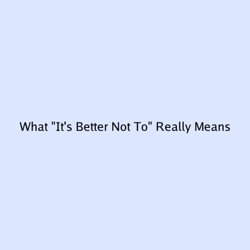 What “It’s Better Not To” Really Means