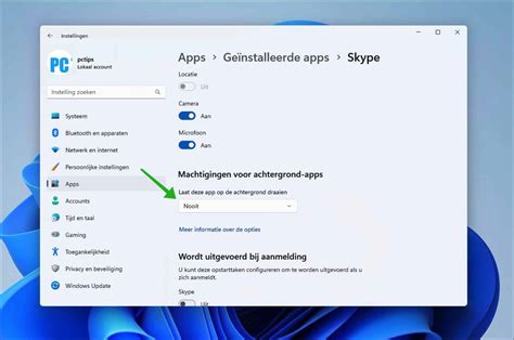 6. Beheer Achtergrondmachtigingen: In de geavanceerde opties sectie, zoek naar de optie ‘Achtergrondmachtigingen’. Je hebt hier drie opties: