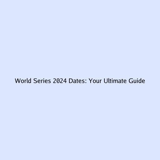 World Series 2024 Dates: Your Ultimate Guide