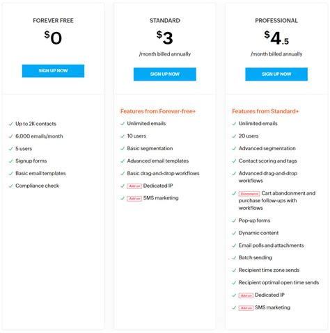 Alright, let’s get down to brass tacks. Zoho Campaigns offers a few different pricing models, so you can pick the one that fits your business perfectly. They have a Free plan, a subscription-based model based on the number of email subscribers you have, and a pay-as-you-go option. Let’s break each one down: